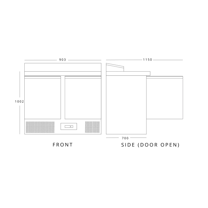 - Improved shelf design that supports 2 1/1 size gastronorm shelves (1 for each door)