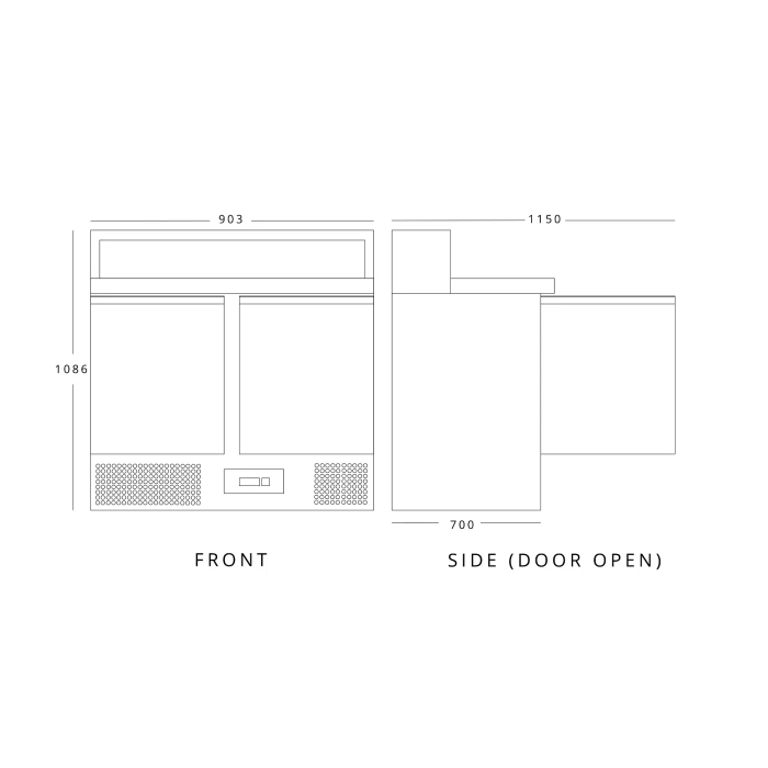 With external dimensions of 1086(H) x 903(W) x 700(D) mm and internal dimensions of 455(H) x 830(W) x 595(D) mm, this pizza prep counter is compact enough to fit seamlessly in any kitchen space while offering ample room for all your preparation needs.