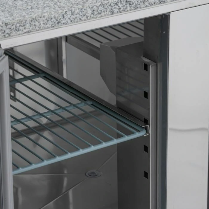 Crafted from high-grade stainless steel, the Blizzard BCC2PREPGRANITE promises durability and a hygienic surface for food preparation. Its granite worktop provides a robust and cool surface, perfect for preparing pizza dough and other delicacies.