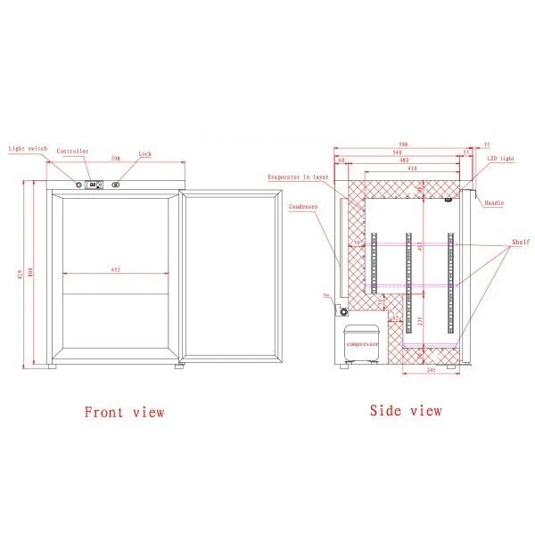 The double glazed glass door with a replaceable gasket the door can be resurrected should it wear over time. and a lock fitted prevents access during out of hours. An internal LED light allows clear visibility. The adjustable front feet with rollers at the rear ensure level siting as well as simple portability when needed.