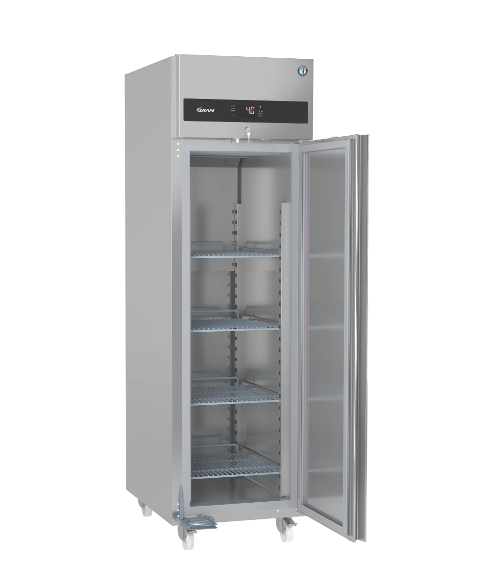 Prioritizing low running costs and sustainability, this refrigerator employs energy-efficient refrigeration technology and runs on natural refrigerants. Its unique features, such as the practical pedal-foot door opener, allow for hands-free operation, promoting a healthier work environment and saving valuable time during busy kitchen operations. The functional and intuitive display ensures ease of use.