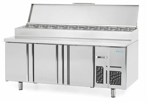 The unit’s refrigerated section opens up through 3 solid hinged doors designed to give you easy access to your stock. There is an automatic defrost system within the counter which prevents the accumulation of frosted ice to provide consistent performance and improved efficiency.