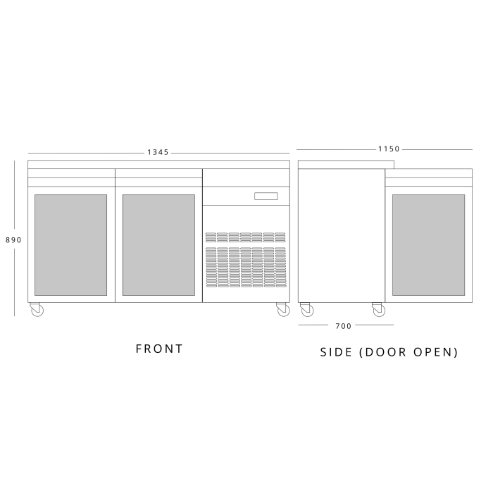 - Dimensions (mm): H890 x W1345 x D700