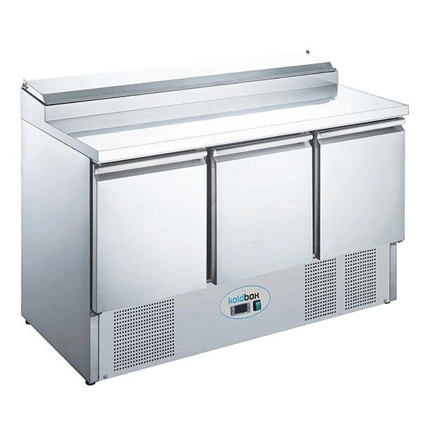 The Koldbox KXCC3-SAL 3 door Compact GN chilled preparation work station with raised collar is insulated to ensure the freshness of your produce. This fresh food gastronorm preparation counter comes in a stainless steel exterior and interior constructions that enable it to endure constant use. It has 3 solid hinged doors that give you access to the under counter storage and an automatic defrost system for the refrigerated storage unit. This prevents the accumulation of frosted ice within the counter. Enjoying professional refrigeration built with you in mind, this unit is designed to fit perfectly in your commercial space combining hygienic food preparation areas with this compact refrigerated cabinet. With a prep counter and a fridge beneath it, is now possible to operate even from places where space is limited. The raised collar topping unit holds 8 x 1/6 GN pans (not included), fresh ingredients can be stored and organised for quick, efficient service. Thanks to the excellent conditions under which you process your products, your guests will be served their cold dishes as freshly as possible.