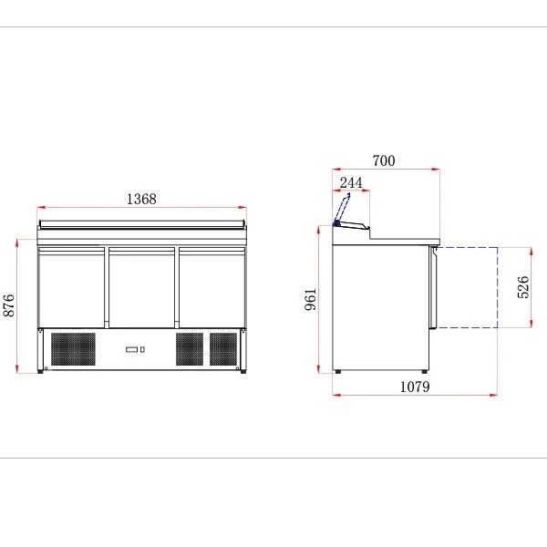 The Koldbox KXCC3-SAL 3 door preparation GN counter with raised collar has fan assisted cooling that is able to provide a temperature range of +2C to +8C for the effective preservation of your food items. Furthermore an under mounted refrigeration layout allows the equipment to be minimised without compromising the chilling capacity performance.