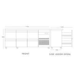 The model is built using stainless steel on both the interior and exterior. It also features a stainless steel worktop that is easy to clean. 2 solid hinged doors give you access to the refrigerated undercarriage that helps you store additional stock. This undercarriage provides temperatures ranging from 2C to 8C.