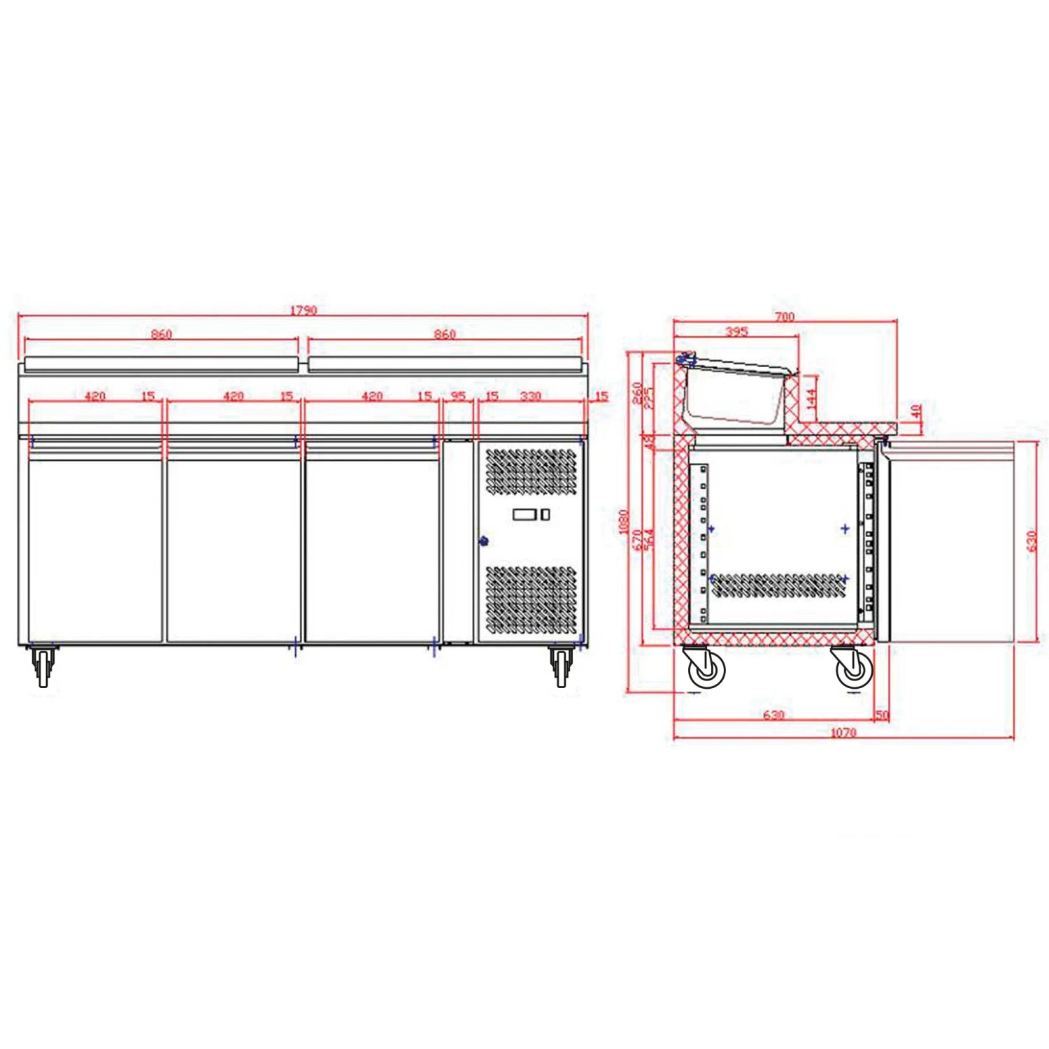 This fully automatic unit is built on lockable castors which ensure easy movement whenever needed. This is especially ideal when cleaning your kitchen. You will be provided with 2 x 1/1 GN shelves to help create the required surface area for the full utilisation of space within the chiller section. The gastronorm topping well accepts 9 x 1/3 size GN pans meaning salads, toppings and garnishes remain organised and within easy reach for rapid service.