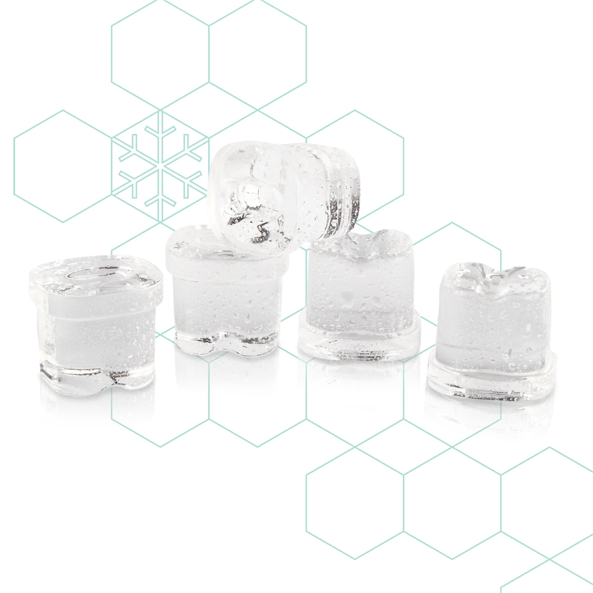 There is adjustable feet for levelling out the unit so that it won’t fall and you can adjust them if it is on a unlevel surface to make it level as well. The spray system produces individual clear ice cubes allowing for many more ice cubes to be seperated and not attatched together.